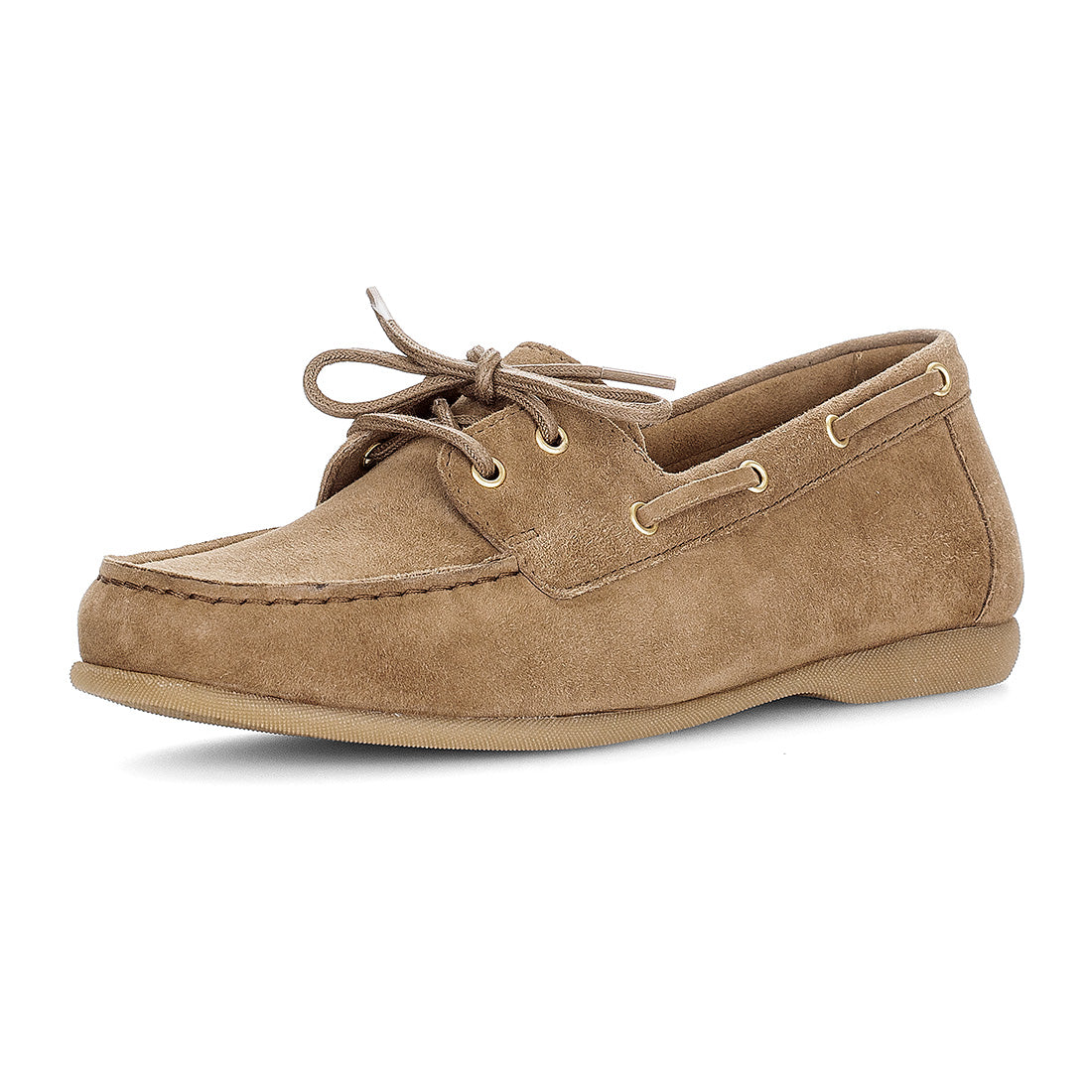 Brun loafer med sejler look med snøre. Almindelig vidde F + Best Fitting for et par millimeter ekstra plads i trædefladen. Gummisål med kile på 1 cm