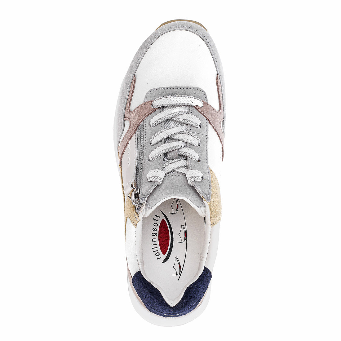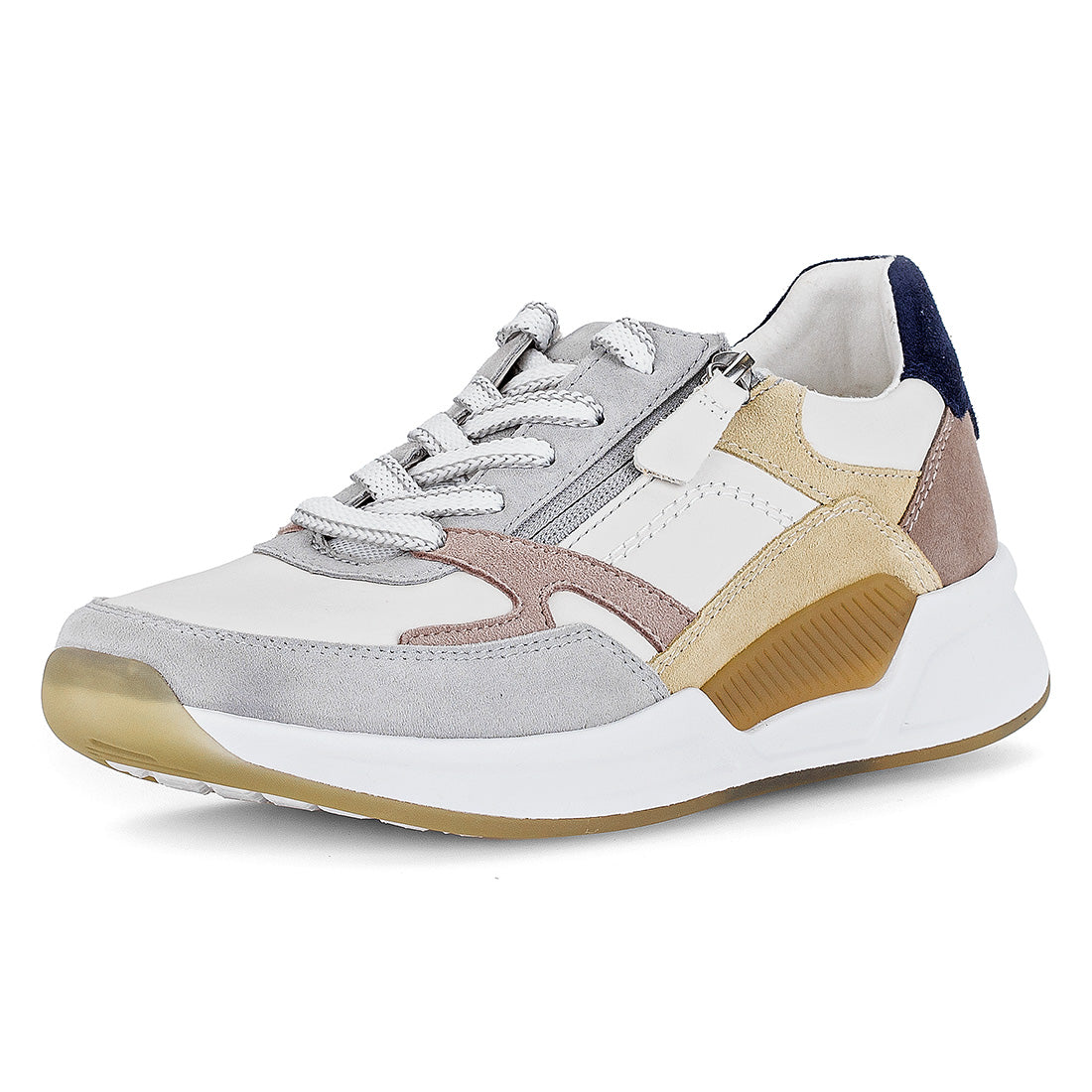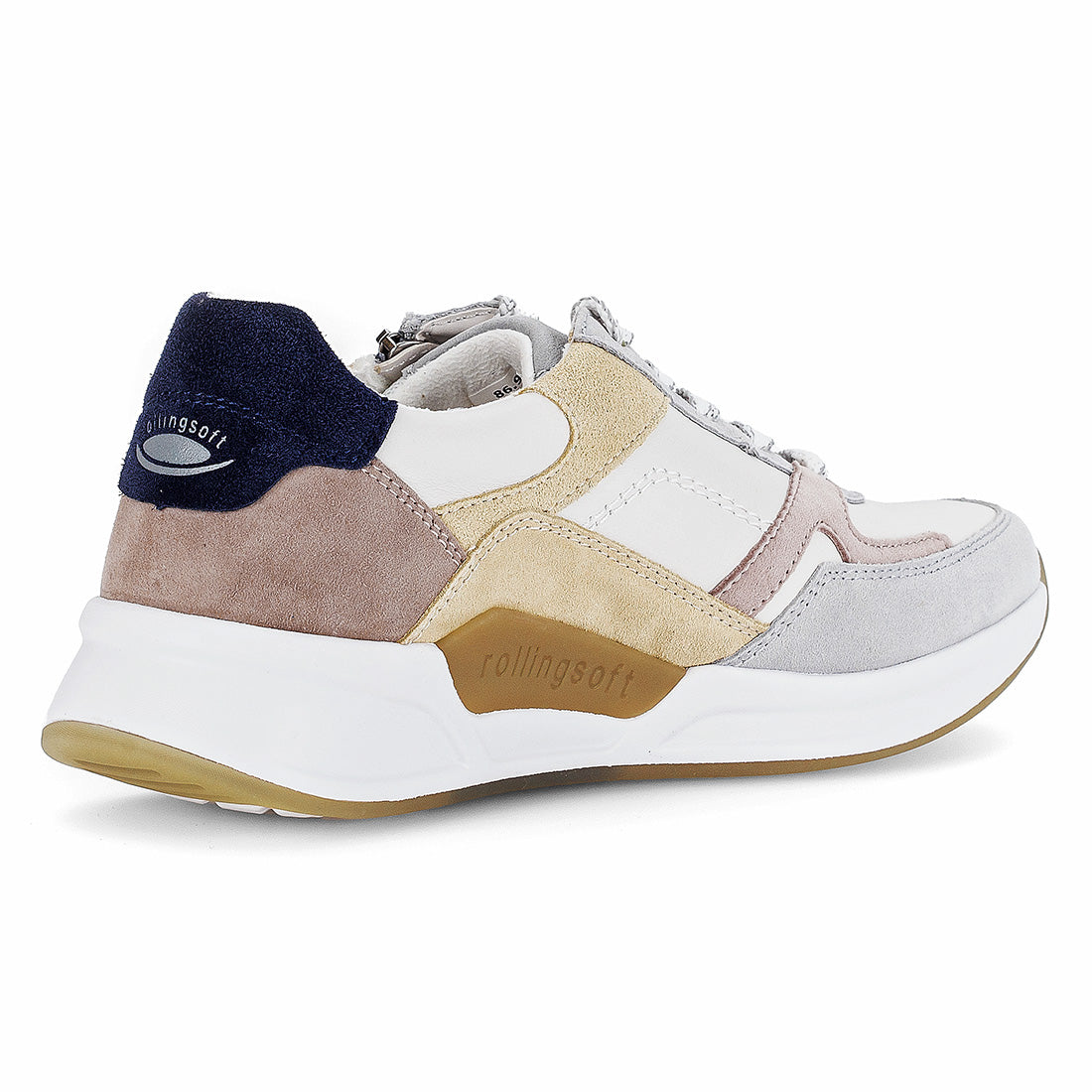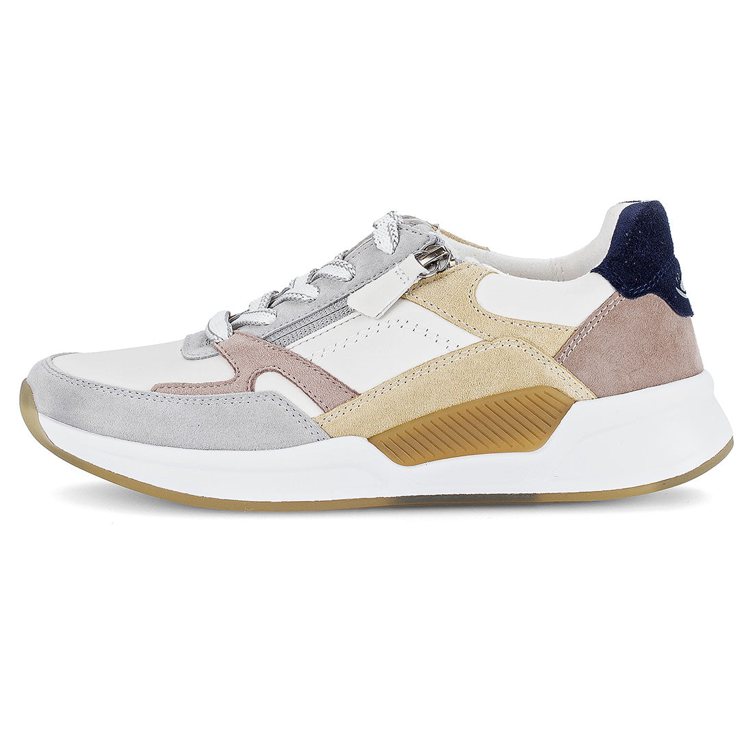 Lys skind med forskellige farver ruskind sneaker med snøre og lynlås. Optifit udtagelig læder indersål med Comfort vidde G. Kile på 2 cm. Rollingsoft er stødabsoberende og sålens bue understøtter fodens naturlige bevægelser.