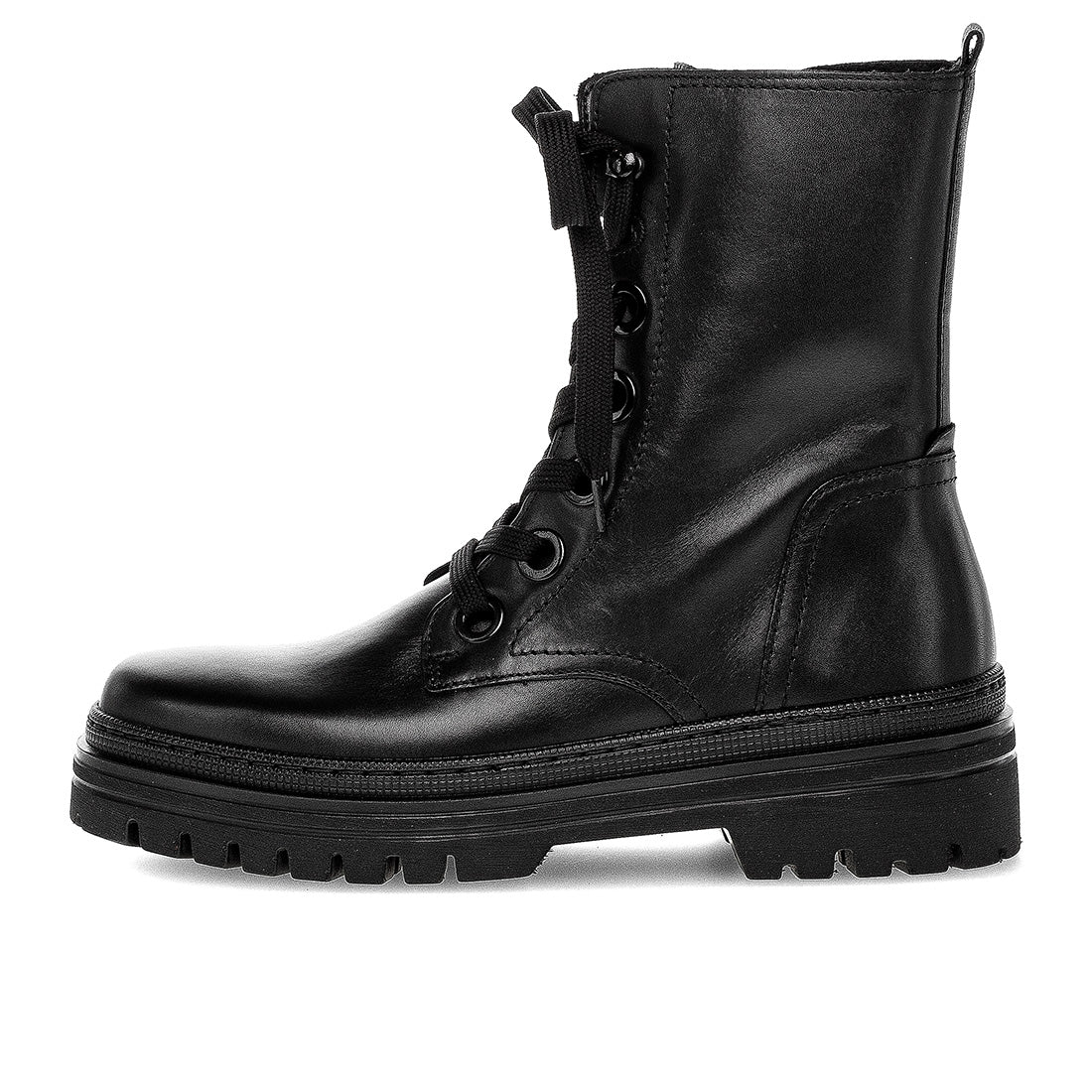 Sort skind støvle med snøre og lynlås i siden. Kraftig sort gummisål . Almindelig vidde F + Best Fitting for lidt ekstra plads i forfoden/trædefladen. Skaft højde 18 cm. Hæl 2,5 cm