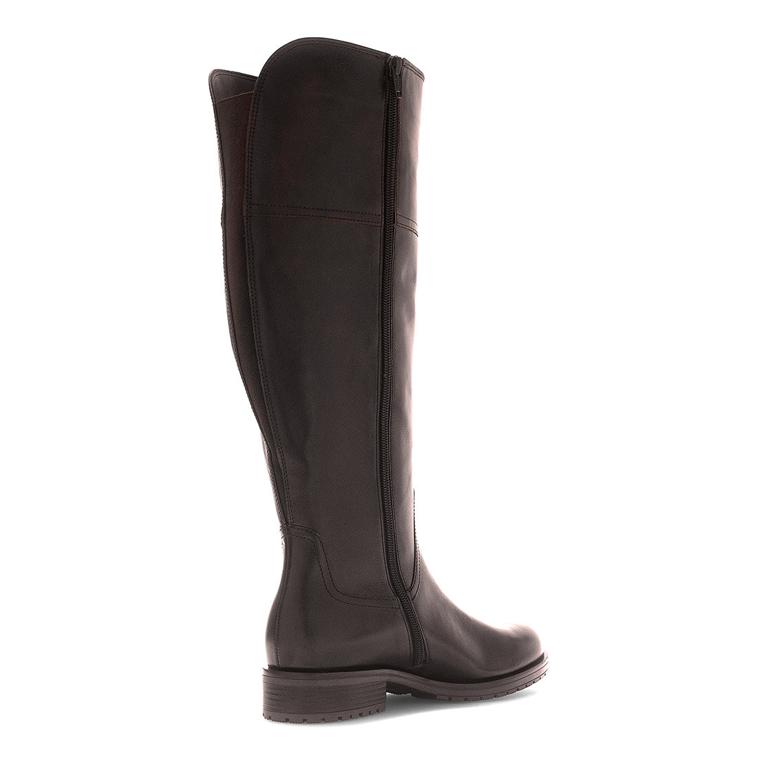 Lang kastanie brun støvle med XL skaftvidde(se Måleskema under INFO og mål omkreds af din læg) Har elastik bagpå, så den strække.Lynlås på indersiden og Comfort vidde G, samt Optifit udtagelig indlægssål. Gummisål og hæl på 2,5 cm. Skaftehøjde:42 cm.