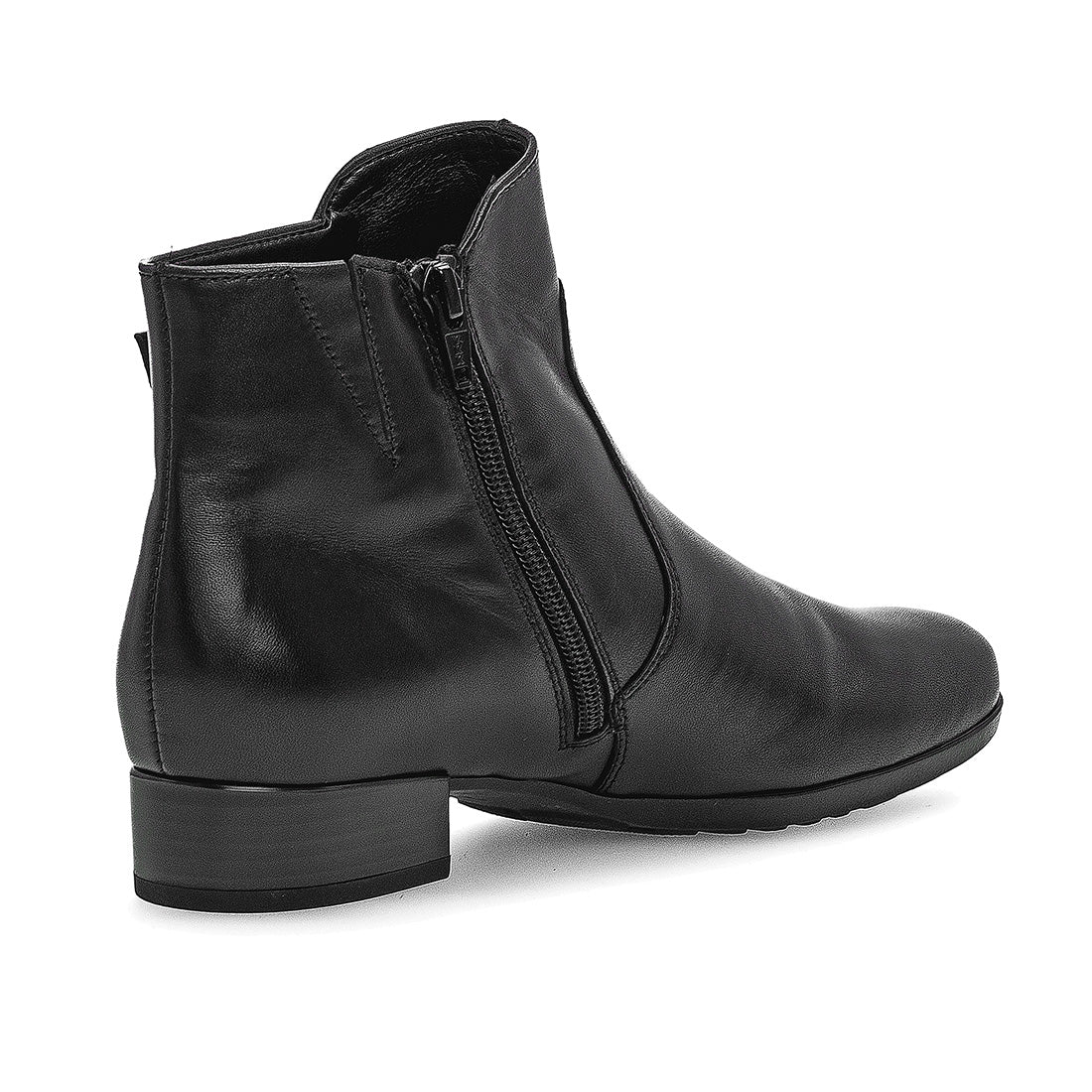 Kort sort lammeskinds støvle med lille pynte spænde og lynlås på indersiden. Let gummisål og hæl på 2,5 cm. Comfort vidde H.