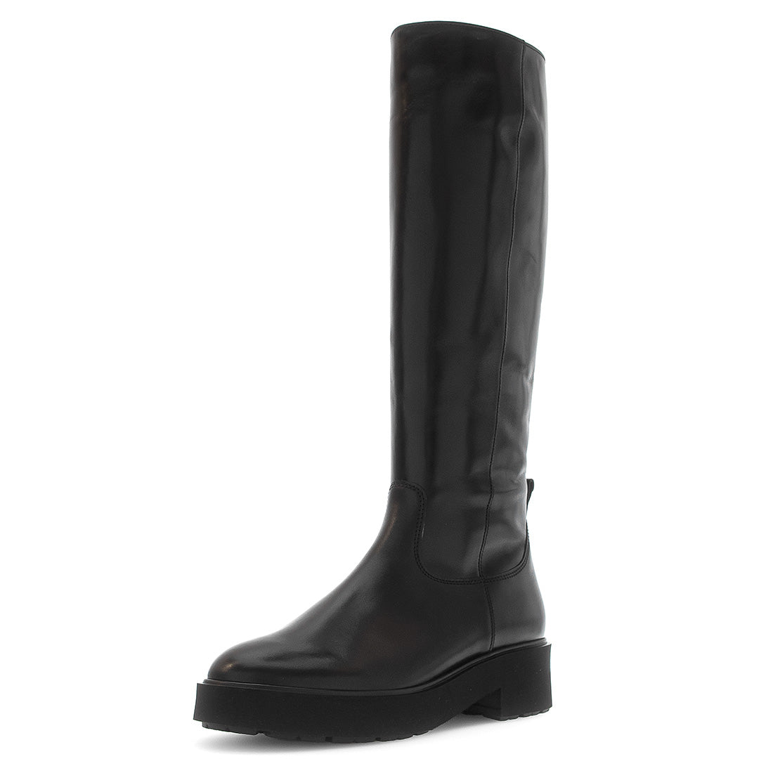 Lang sort skind støvle med lynlås og elastik kile på indersiden. Skaftvidde S ( Se måle skema under INFO - skaftvidder og mål omkreds af din læg ) Microfiber foer . Skafthøjde 42 cm og hælhøjde 2 cm. Normal vidde F + Best Fitting.