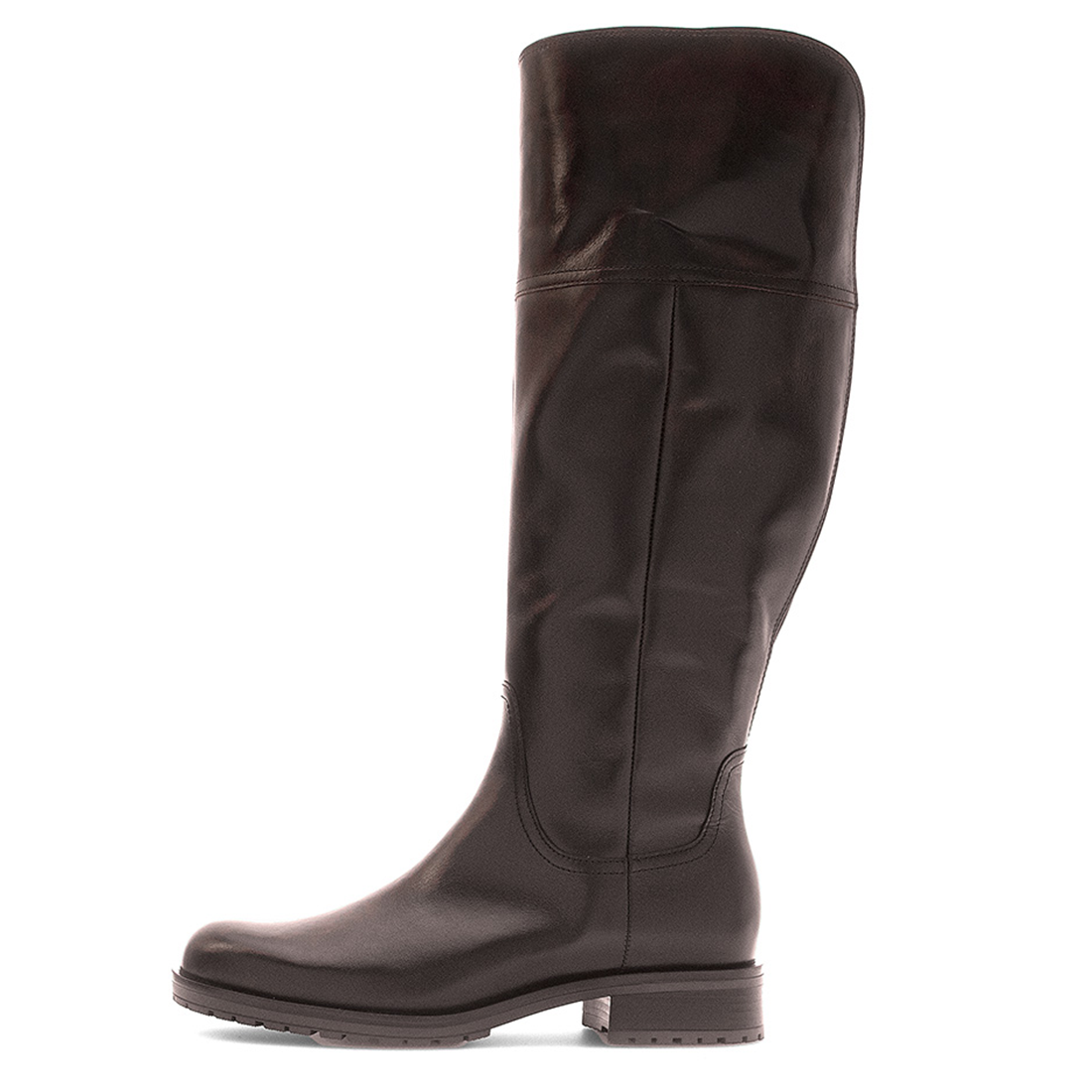 Lang kastanie brun støvle med XL skaftvidde(se Måleskema under INFO og mål omkreds af din læg) Har elastik bagpå, så den strække.Lynlås på indersiden og Comfort vidde G, samt Optifit udtagelig indlægssål. Gummisål og hæl på 2,5 cm. Skaftehøjde:42 cm.