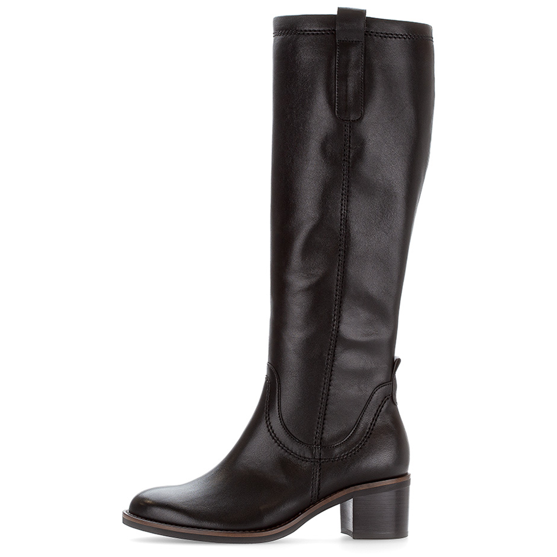 Lang sort skind støvle med lynlås på indersiden. Skaftvidde M ( Se måle skema under INFO - skaftvidde og mål omkreds af din læg ) Microfiber foer. Almindelig F bredde + Best Fitting for ekstra plads i trædefladen. Skafthøjde 42 cm og hælhøjde 5 cm.