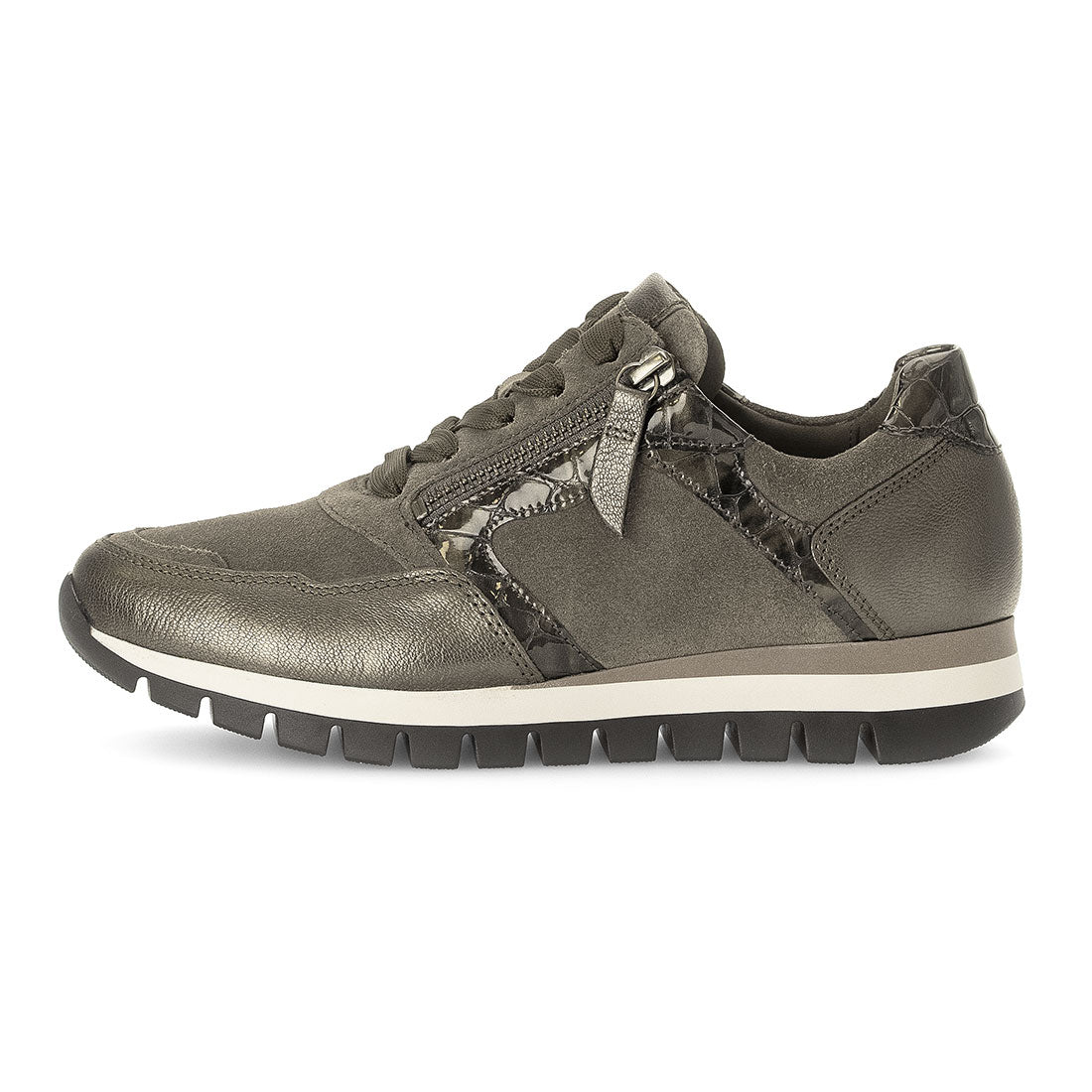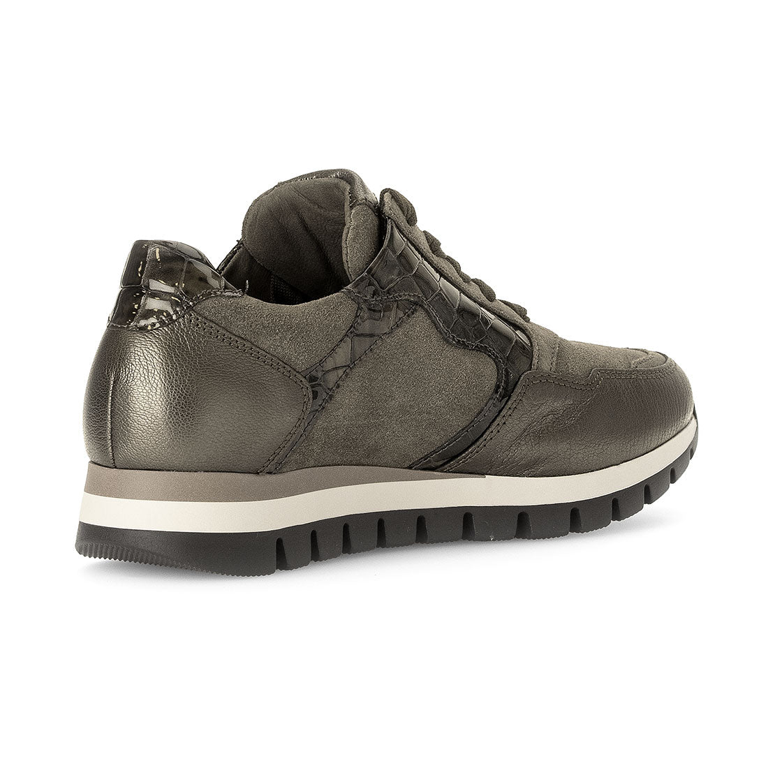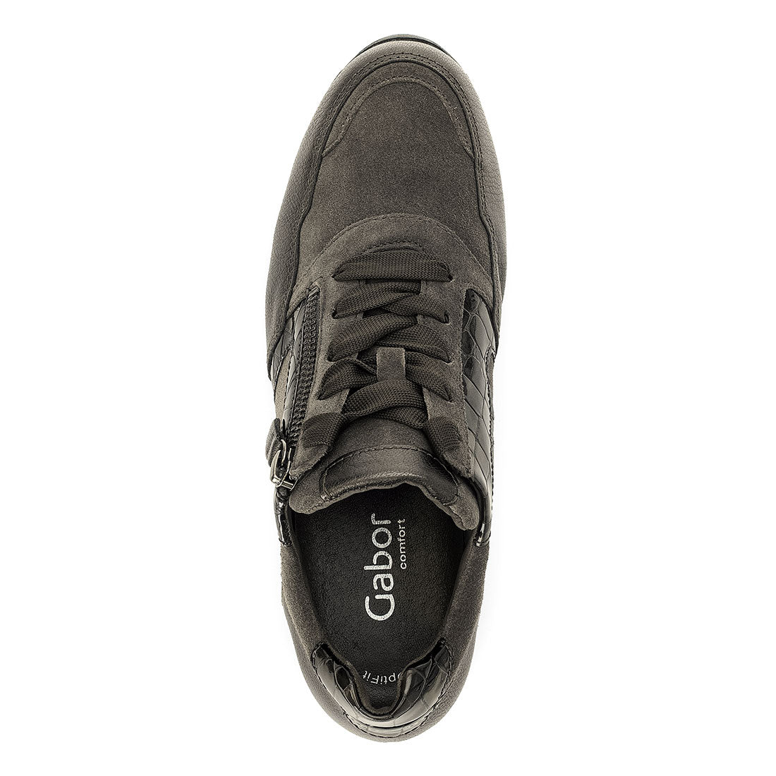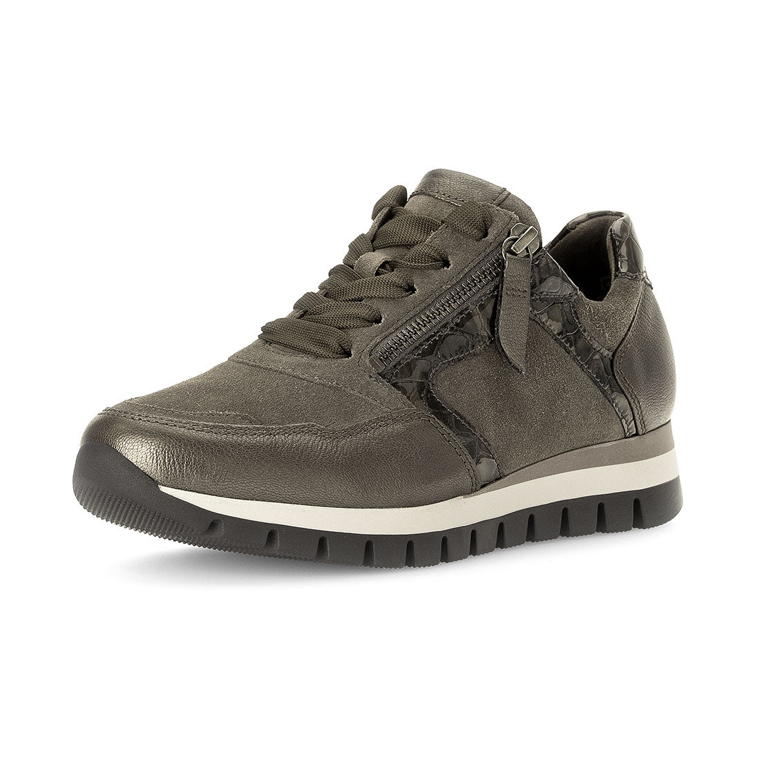 Mohair brun ruskind + skind sneaker med snørebånd og lynlås. Optifit udtagelige læder indersål med Comfort H, så den er ekstra bred i hele skoen. Sort / hvid gummisål med kile på 1 cm.