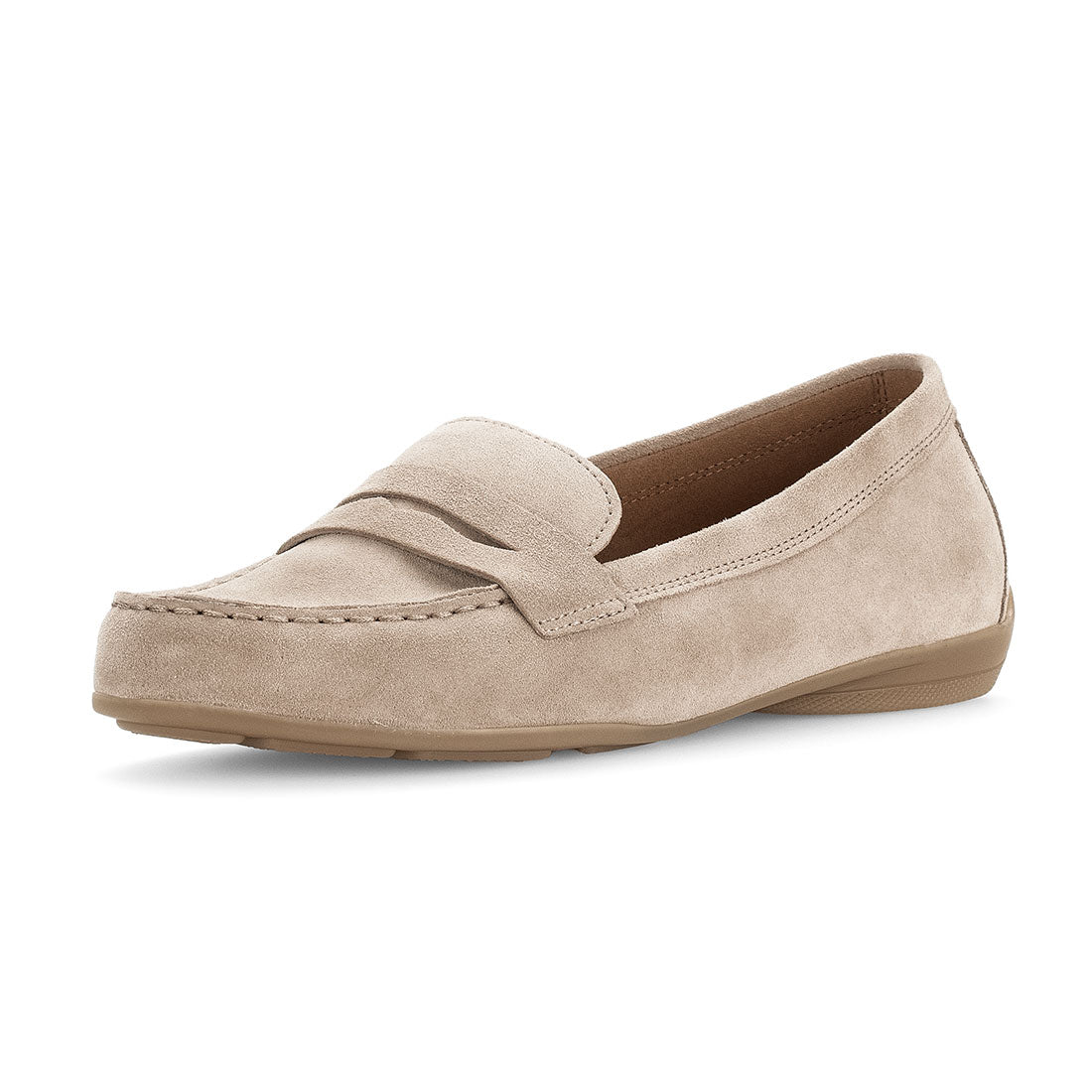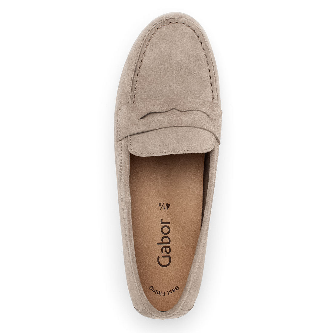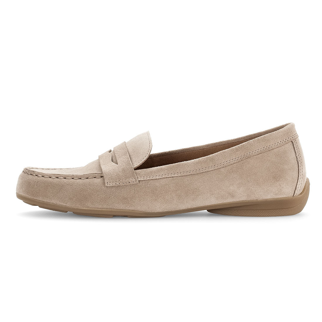 Beige ruskind loafer med let og blød gummisål og 1 cm hæl. Best Fitting for ekstra millimeter plads i forfoden/trædefladen, hvilket sikrer optimal komfort.