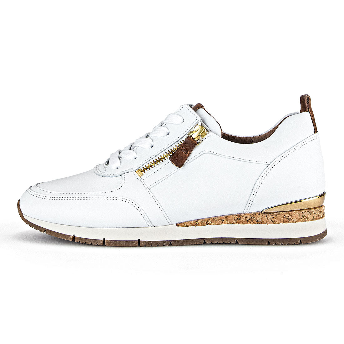 GABOR Hvid skind sneaker m. snøre + lynlås