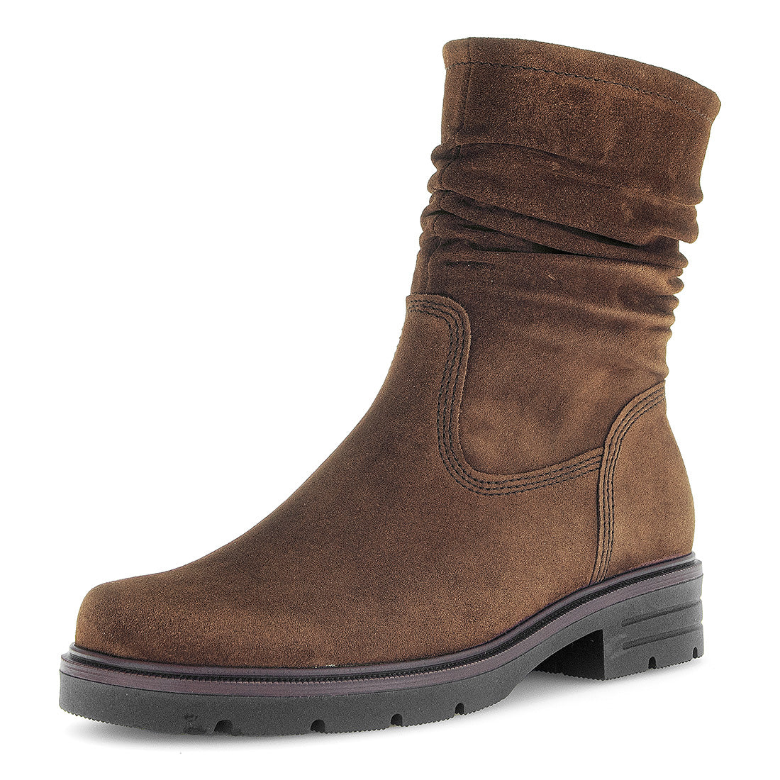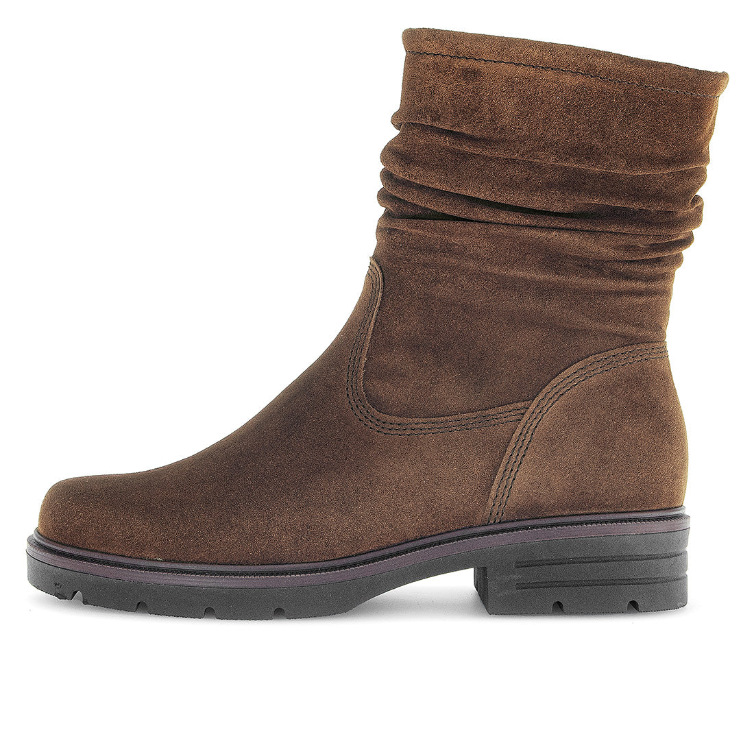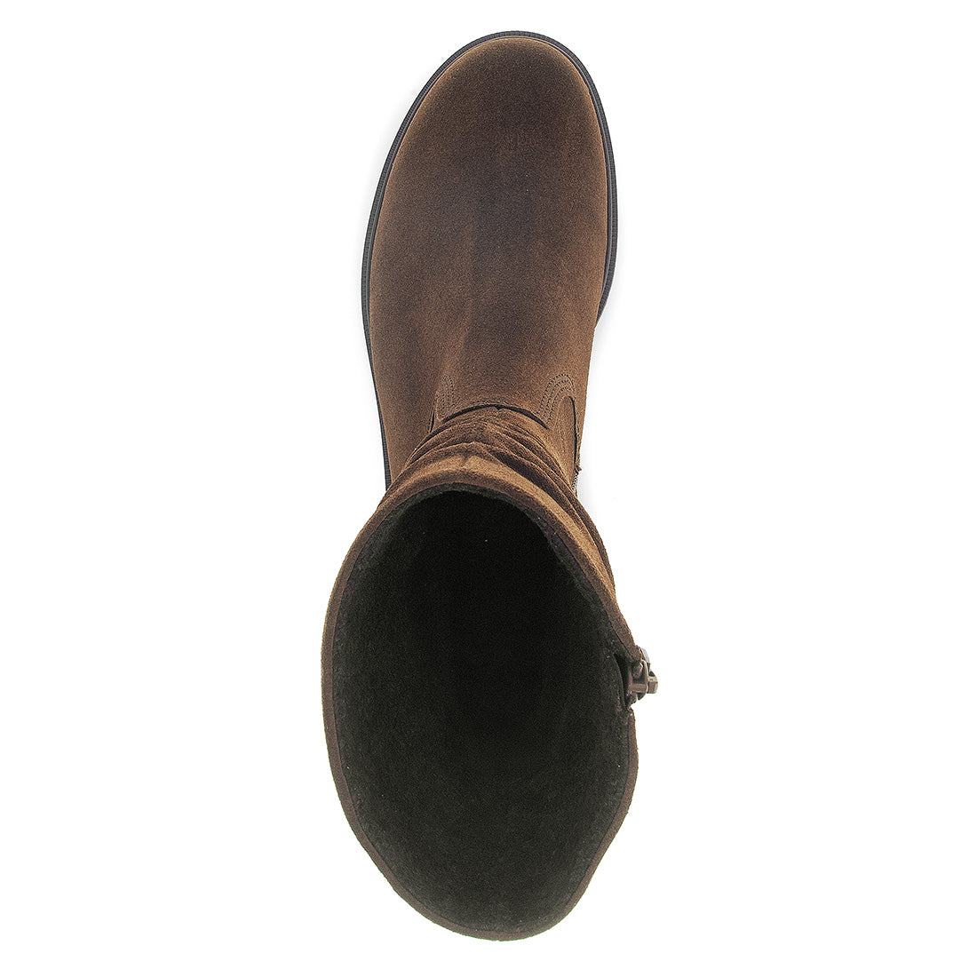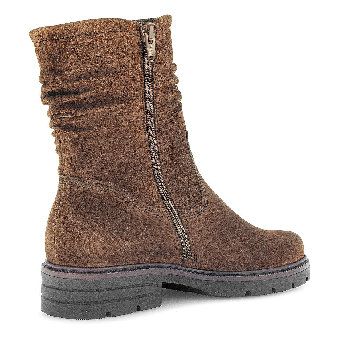 Brun ruskind støvle med rynke detalje og lynlås på indersiden. Almindelig vidde F + Best Fitting for et par ekstra millimeter plads i forfoden. Med varmt Melange for. Støvlen har Optifit udtagelig indlægssål. Skafthøjde 19 cm og hæl på 2 cm