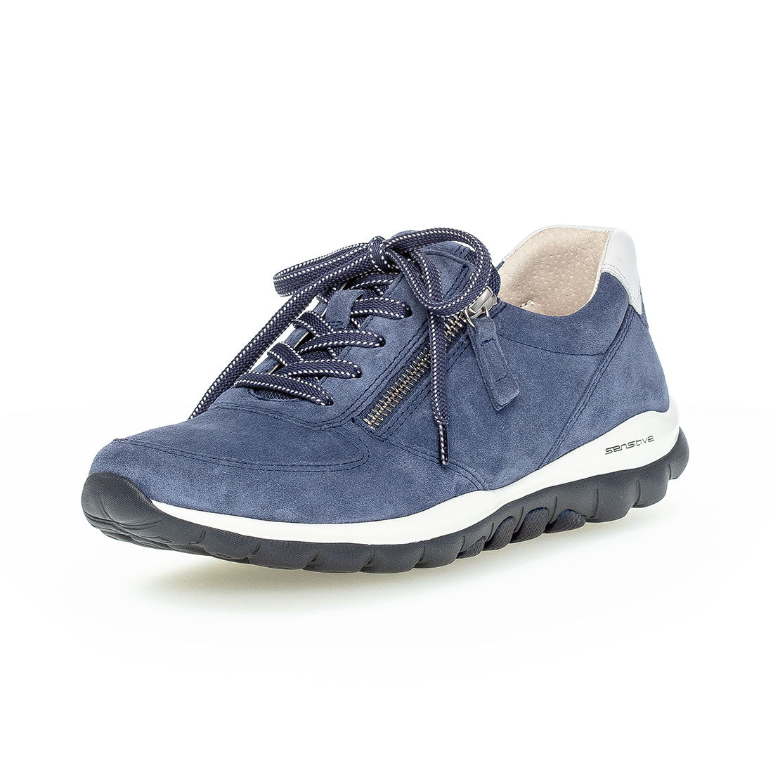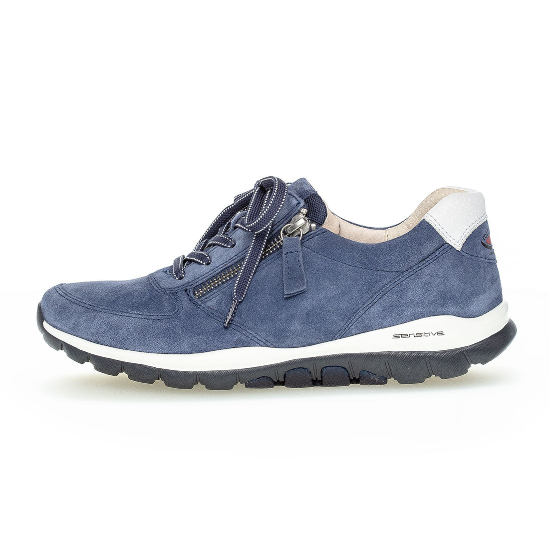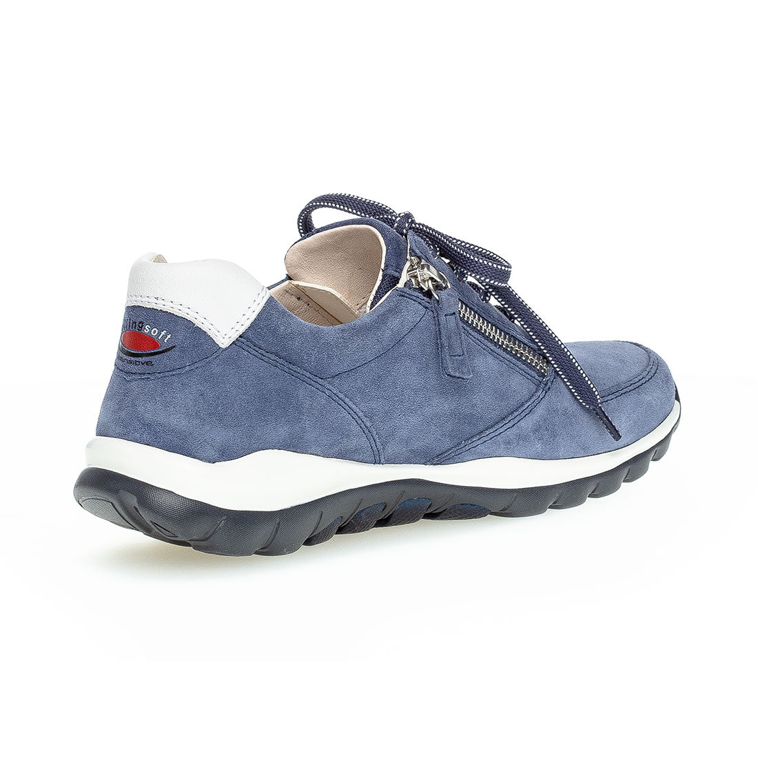 Jeans blå ruskind sneaker med lynlås i siderne og snøre foran. Optifit udtagelig indlægssål med Comfort vidde G.Hvid kile på 2 cm.Rolling Soft er stødabsoberende og sålens bue understøtter fodens naturlige bevægelser. Aflaster op i ben og ryg.